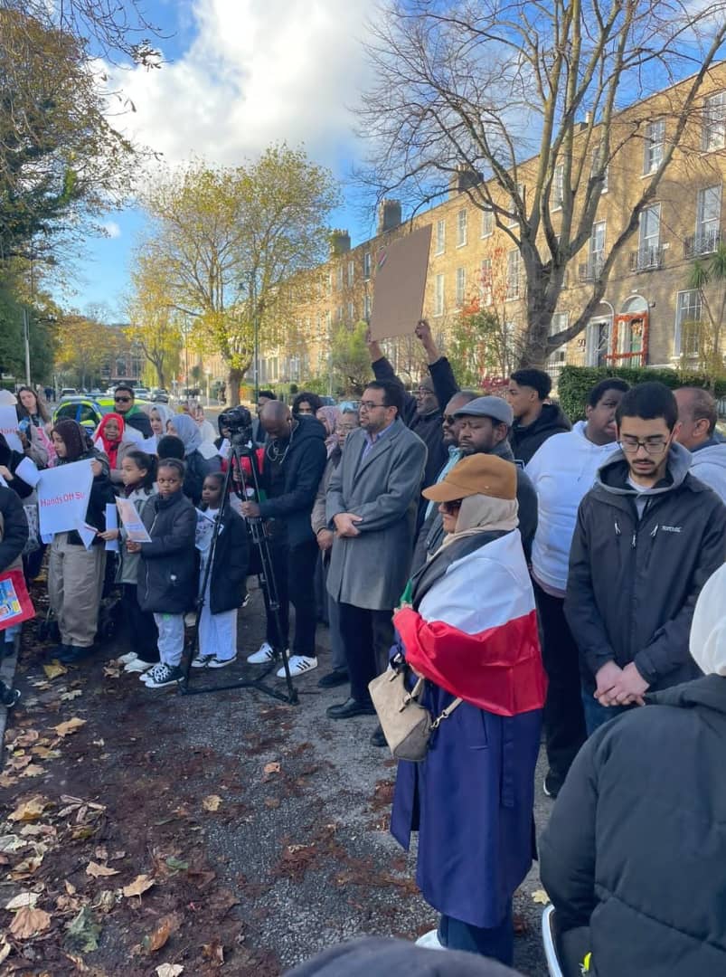 توافد السودانيون من جميع أنحاء أيرلندا لتلبية الدعوة التي أطلقها تجمع الطلاب السودانيين وتجمع السودانيين الشرفاء بالخارج والجالية السودانية ونقابة الأطباء، للمشاركة في وقفة احتجاجية تندد بجرائم مليشيا الجنجويد ضد أهالي مدينة الفاشر، وذلك أمام سفارة دولة الشر الإمارات، تزامناً مع تظاهرات سبت الغضب التي عمّت مختلف دول الاتحاد الأوروبي.