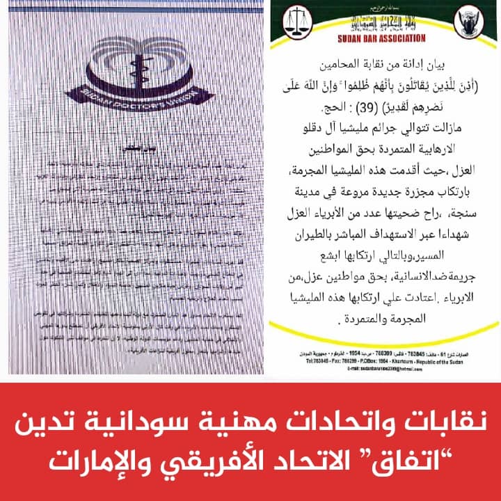 ورأت النقابات أن التحرك الإماراتي الأخير يهدف إلى منع السودان من استعادة مقعده في الاتحاد الأفريقي، رغم أن الخرطوم “استوفت شروط العودة كاملة” بتعيين رئيس وزراء مدني وتشكيل حكومته.