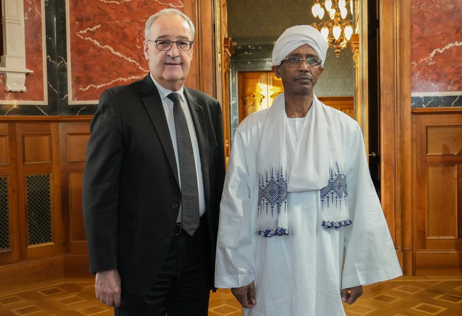 نقل مندوب الدائم بجنيف السفير حسن حامد سفير السودان المعتمد لدى الاتحاد السويسري تحيات وتهاني فخامة رئيس مجلس السيادة الانتقالي الفريق أول ركن عبد الفتاح البرهان للرئيس السويسري السيد غاي بارميلان